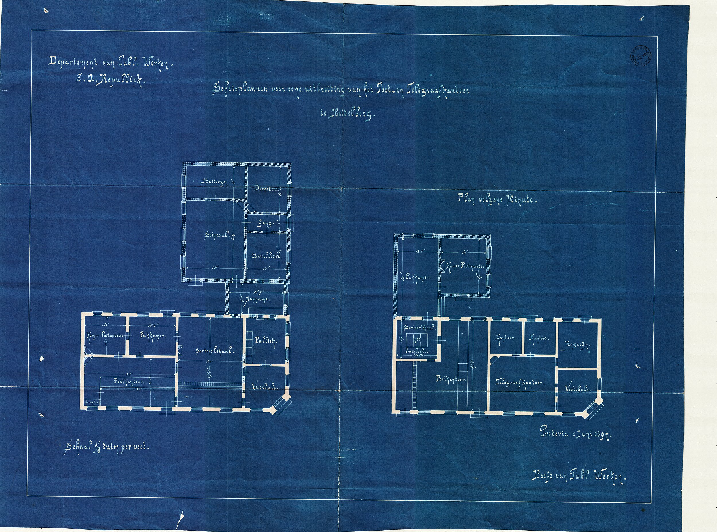 Schetsplannen voor eene uitbreiding van het Post -en Telegraafkantoor te Heidelberg