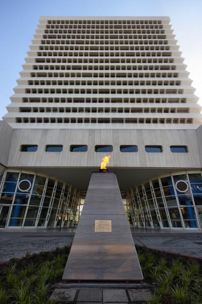 Despite being one of the oldest faculties on campus, the Faculty of Humanities only found a permanent residence in 1977 when the impressive building designed by UP alumnus Brian Sandrock was inaugurated. Because at the time the city council had refused to close Roper Street, the building was designed as a split-legged construction over the street. The building comprises 29 lecture halls with seating for 2 733 students and 15 seminar rooms. The building was designed to provide office space for around 400 staff members and at the time of its inauguration constituted a quarter of the total lecture and office space on campus. Roper Street was eventually closed to the public in 1993.