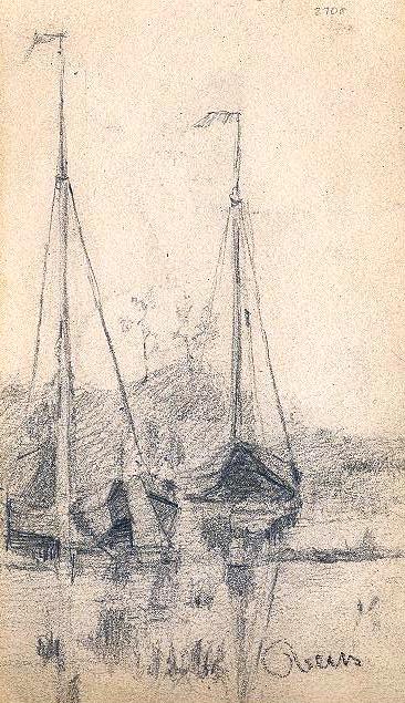 | dc.description | Charcoal sketches on both sides of paper portraying two sailboats on a marsh with a small hill and trees in the background on the one side. On the other side is a sketch of a "sleeping" man with a beard facing to the left . | en |