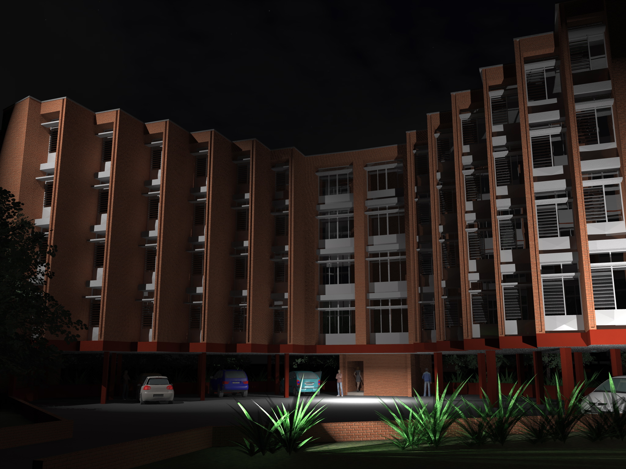 Coloured virtual model, night view.
