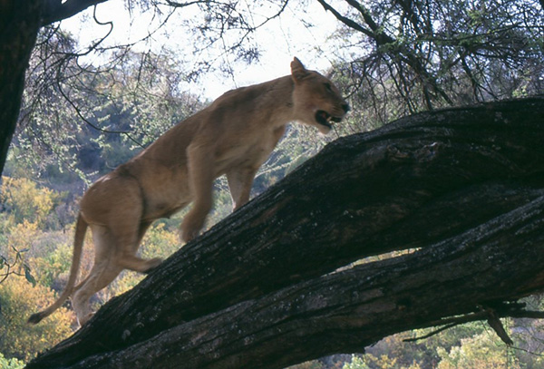 Lioness in tree, Lake Manyara National Park, Tanzania - July 1996
