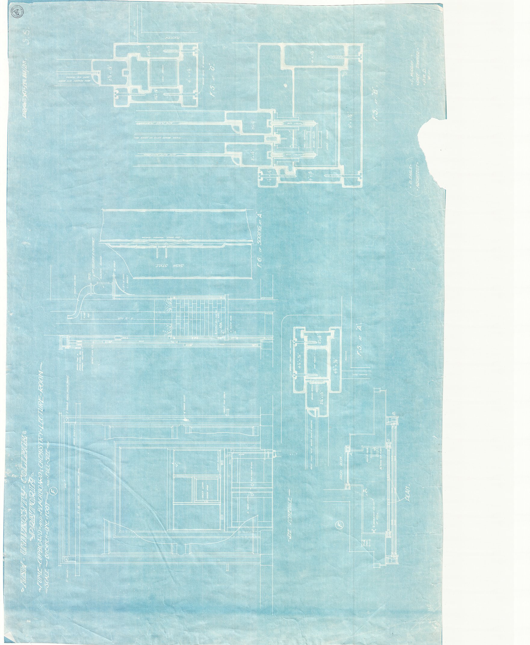 Digitised version of National Archive file no 2/829, drawing 1168/28, of a fume cupboard and blackboard in the Chemistry lecture room, New University College [Transvaal University College (T.U.C.)], Pretoria.