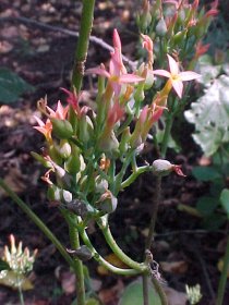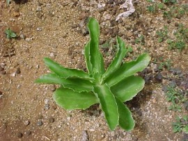 BOTANICAL DESCRIPTION: General: An erect or straggling perennial succulent herb, growing up to 1 m high and usually sparsely branched. Occuring in colonies. Leaves: The blue-green leaves are elliptical to rounded with a whitish bloom. The margins can be scalloped or lobed and the tips rounded. Flowers: Star-shaped flowers are borne in a sparse branched inflorescence on a long stalk. Red to orange. All flower parts are in fours. March to December.