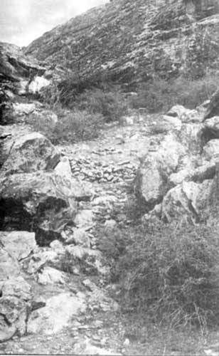 The remains of stone terrace walls on the slope at the northern foot of Mapungubwe Hill in 1995