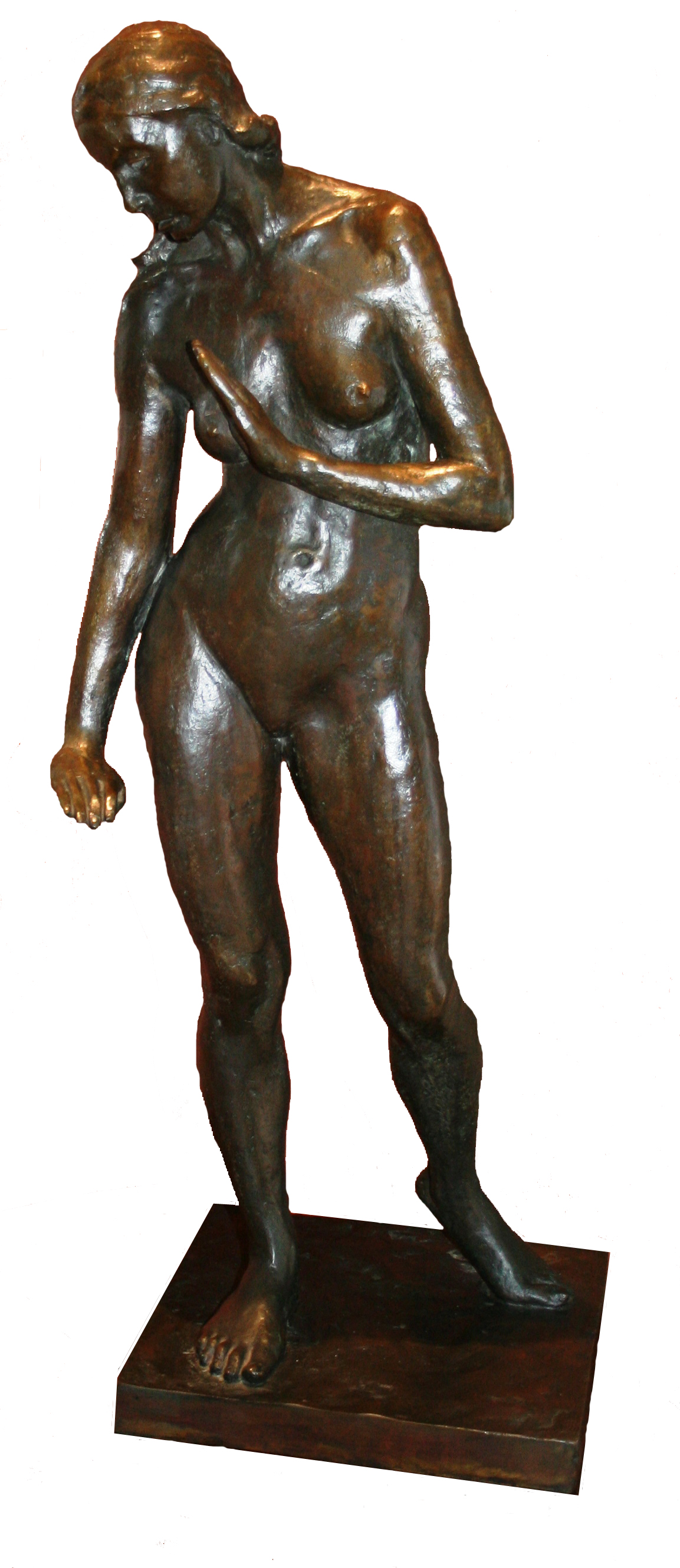 An older female dancer with long hair at the end of a ballet is depicted in bronze. The work was posthumously purchased from the 1948 auction in South Africa. The original plaster was destroyed as far as could be ascertained and Dancer with the Long Hair is privately owned by Ms Annetjie Joubert.