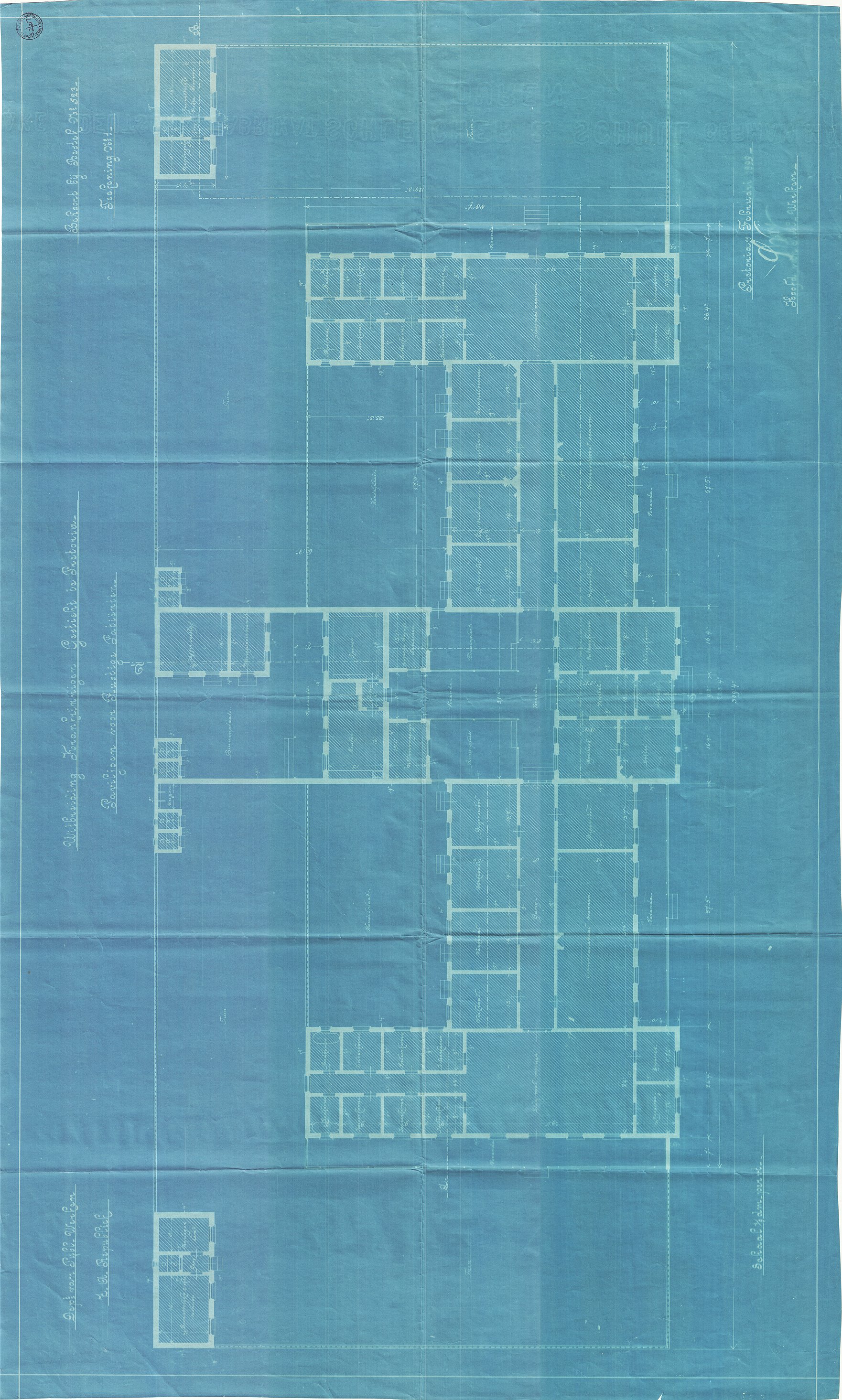 Digitised version of National Archive file S.2/217. Drawings of additions to Asylum, Pretoria, signed by "S.W. Wierda, Hoofd van Dept. van Publieke Werken"