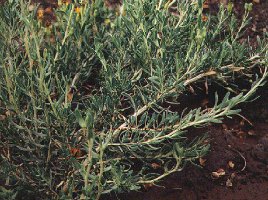 Botanical description: General: A weed, growing as a bushy shrub, ±1 m high, with pale papery stems