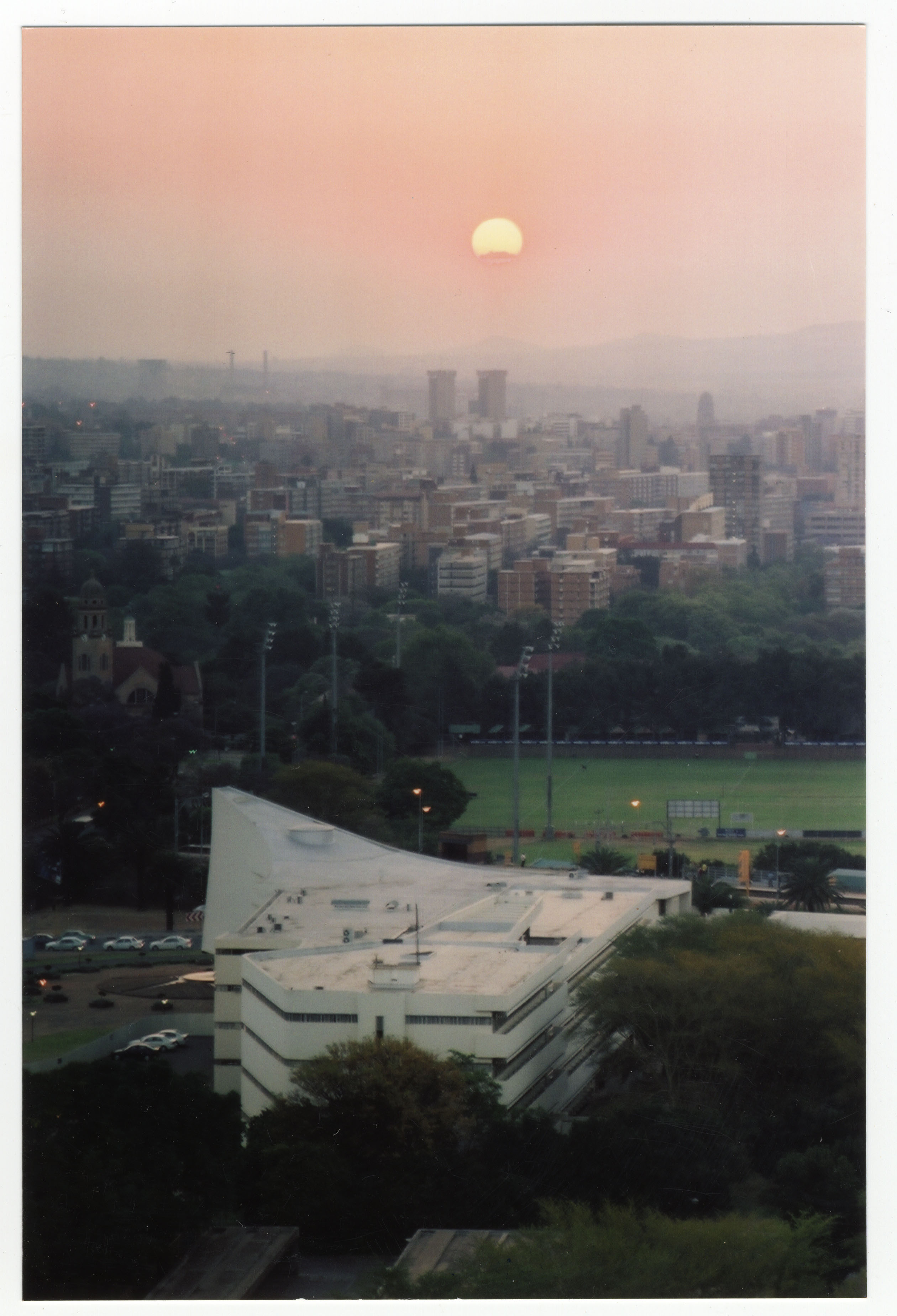Aerial view of the Administration Building with an overlook of Loftus Versfeld Stadium and the Pretoria CBD, Hatfield Campus, University of Pretoria.