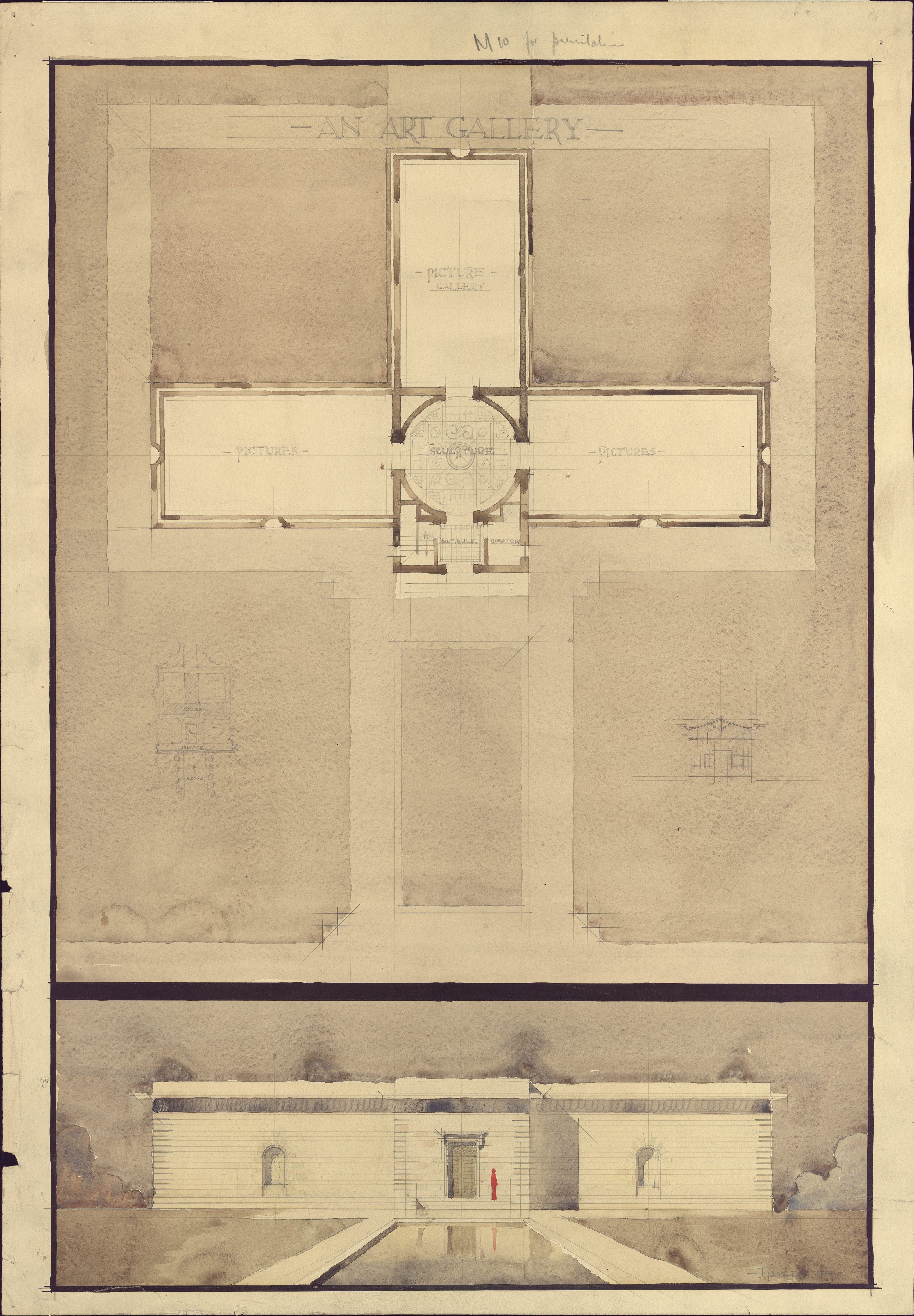 A student design for an Art Gallery showing the influence of Edwin Lutjens and the Johannesburg Art Gallery.