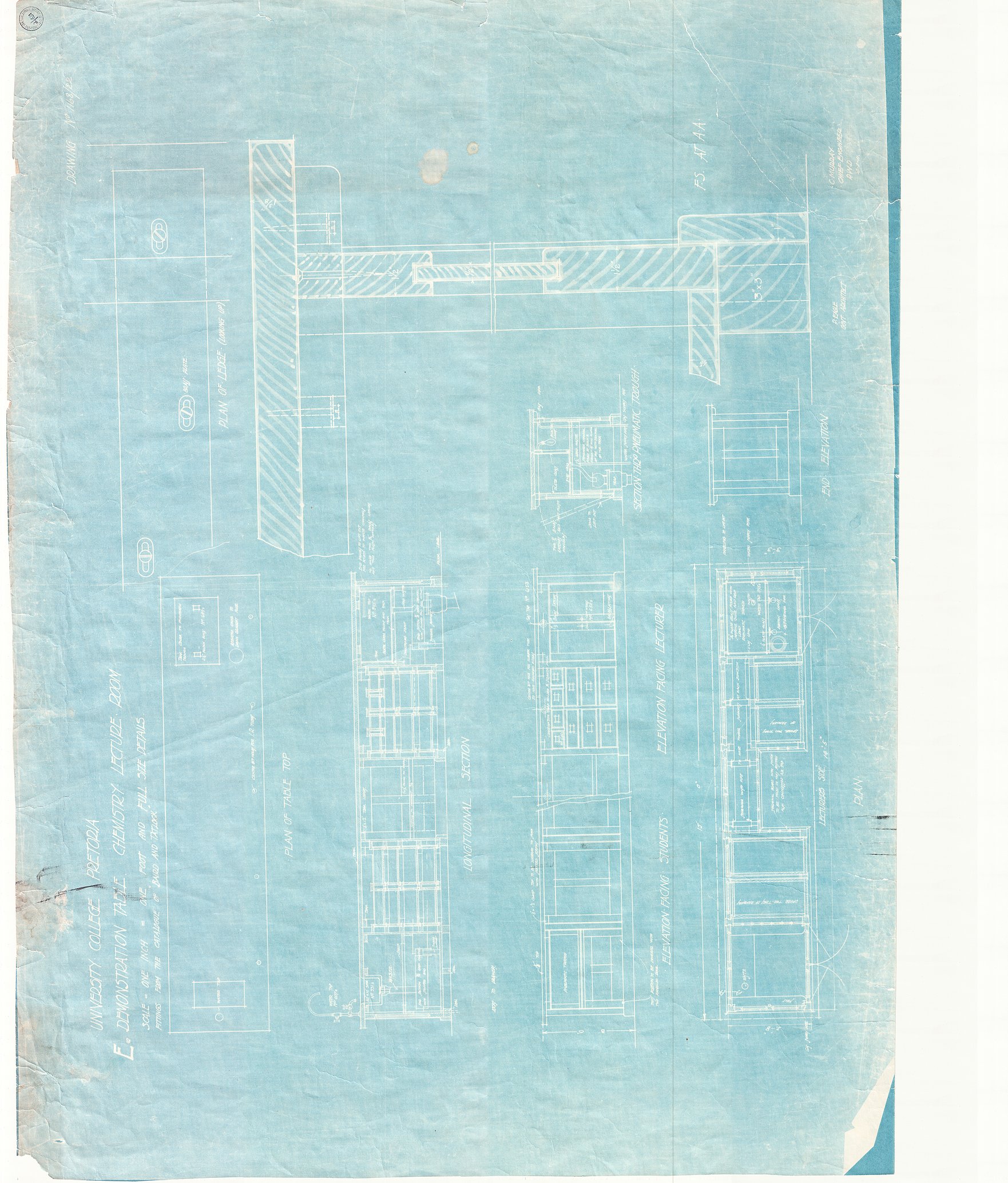 New University College, Pretoria: demonstration table, Chemistry lecture room