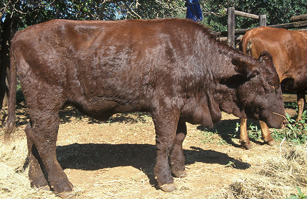 Acute lumpy skin disease (LSD) in a bovine : ventral severe oedema and swelling of the dewlap and ventral parts of the abdomen and legs