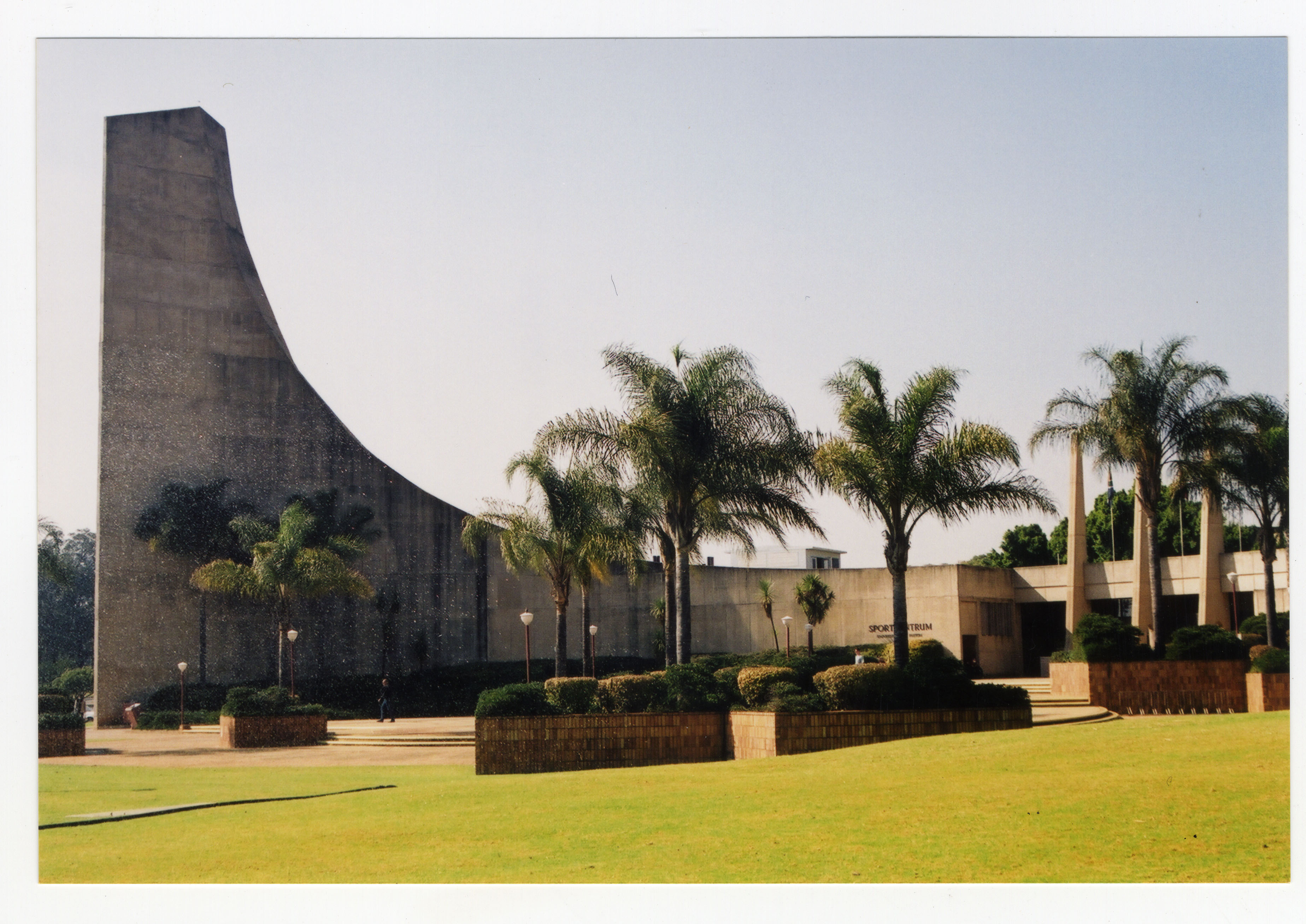 Distant side view of the Indoor Sports Center, LC De Villiers Campus, University of Pretoria.
