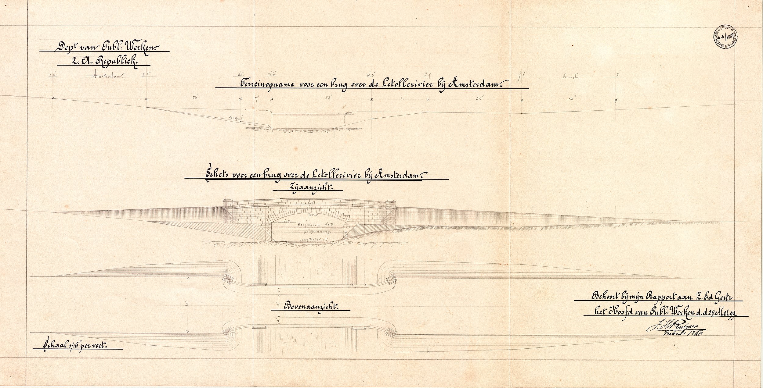 Digitised version of National Archive file S.3/1869. Site plan: bridge across the Letolle River, Amsterdam