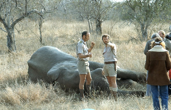 Eddie Young and Clive Walker, Elephant immobilization, Klaserie Private Wildlife Reserve, South Africa - August 1978