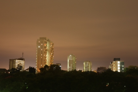 Evening overview of the male and female Residences, Hatfield Campus, University of Pretoria.