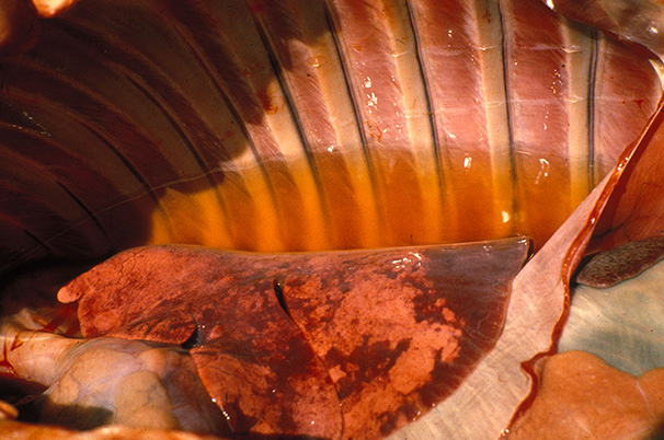 Heartwater in a bovine : severe hydropericardium and lung oedema