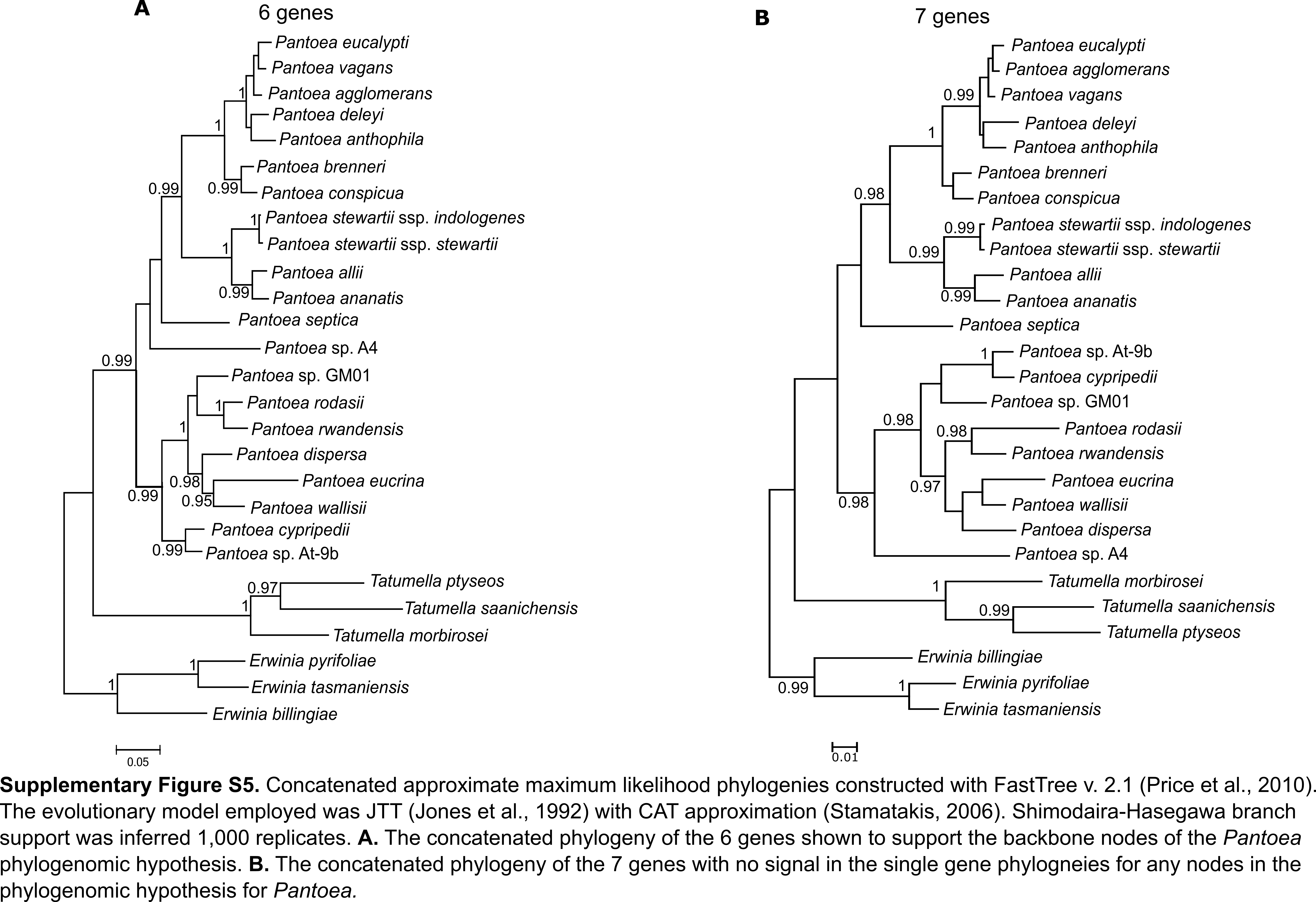phylogeny for Pantoea, a member of the Enterobacterales. We explored the presence