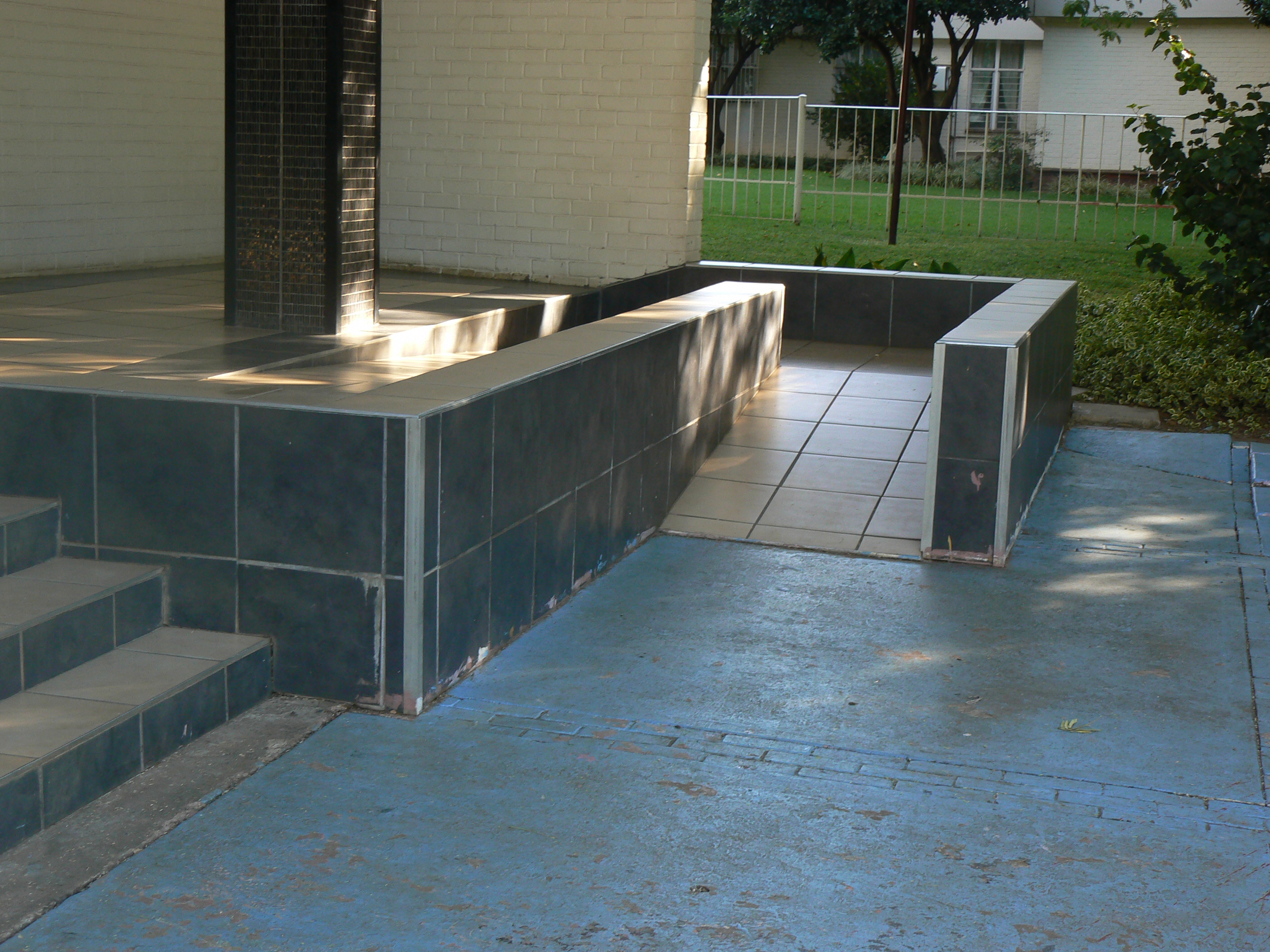 Series of photographs of the entrance to the Magrietjie ladies residence in Hatfield, including one of the access ramp for wheelchairs.