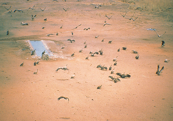 Vultures at a drinking place in the Kruger National Park : cultures are suspected of contaminating water holes with Bacillus anthracis