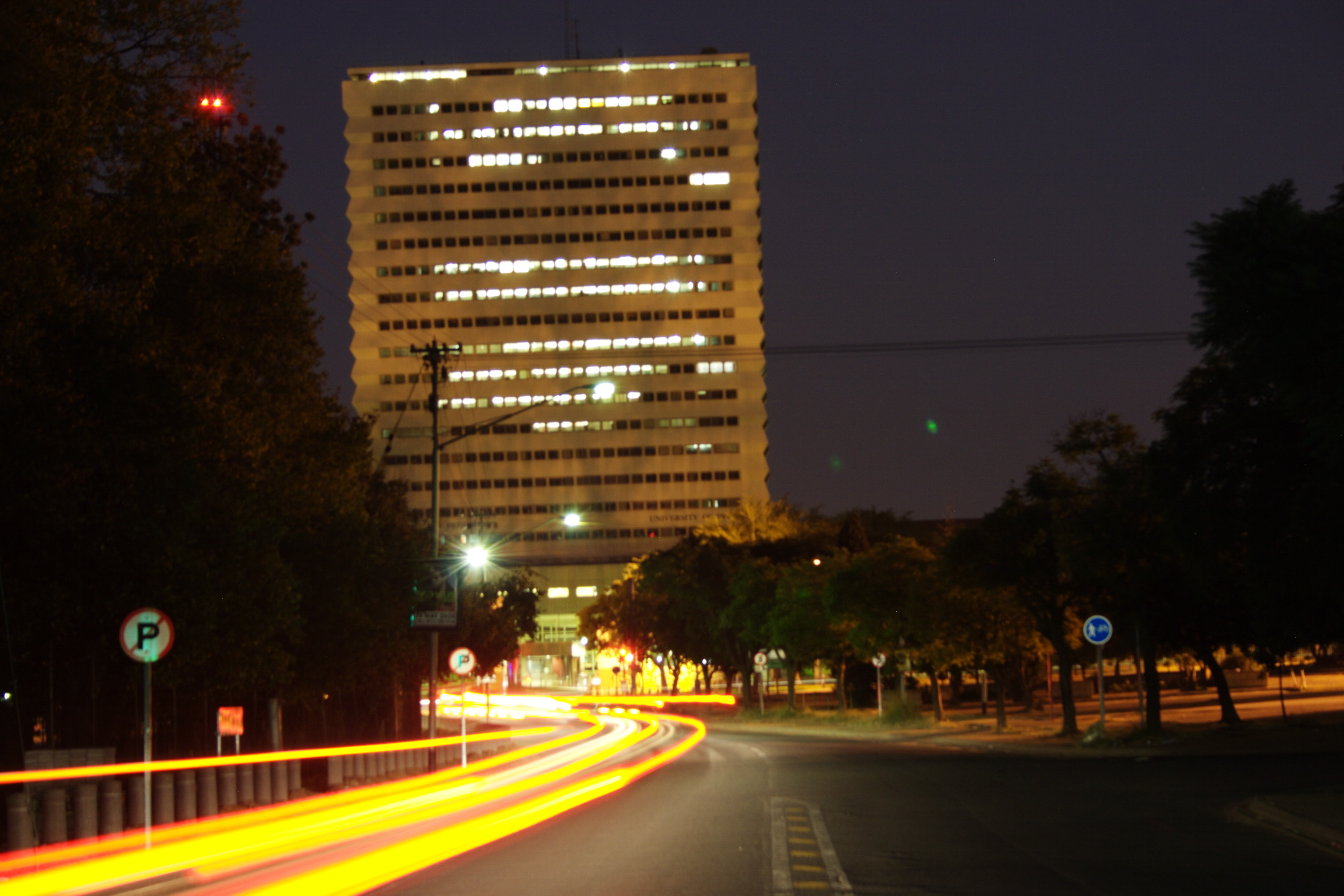 Night view of the Human Sciences Building, Hatfield Campus, University of Pretoria.