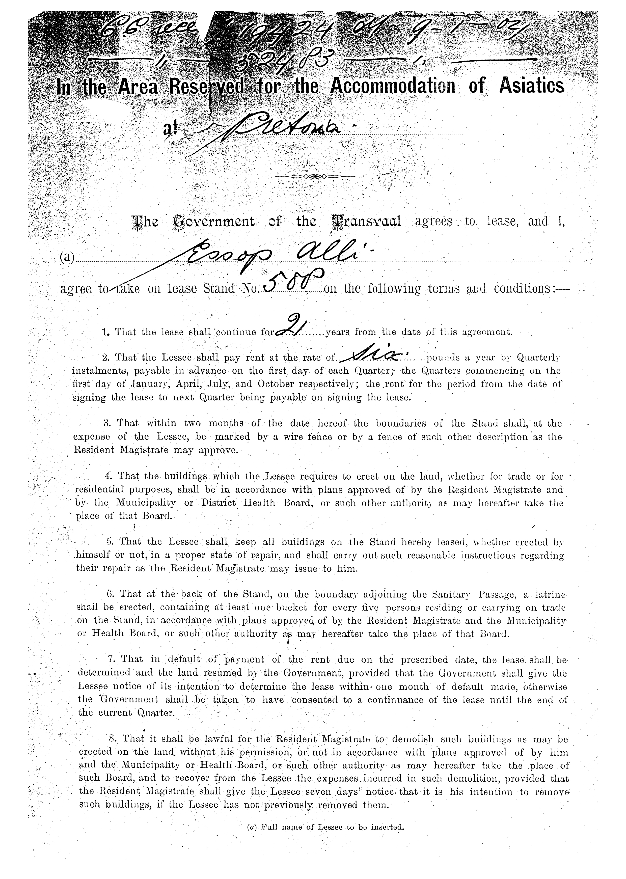 A Lease agreement for stand no.500 with the list of conditions to it.