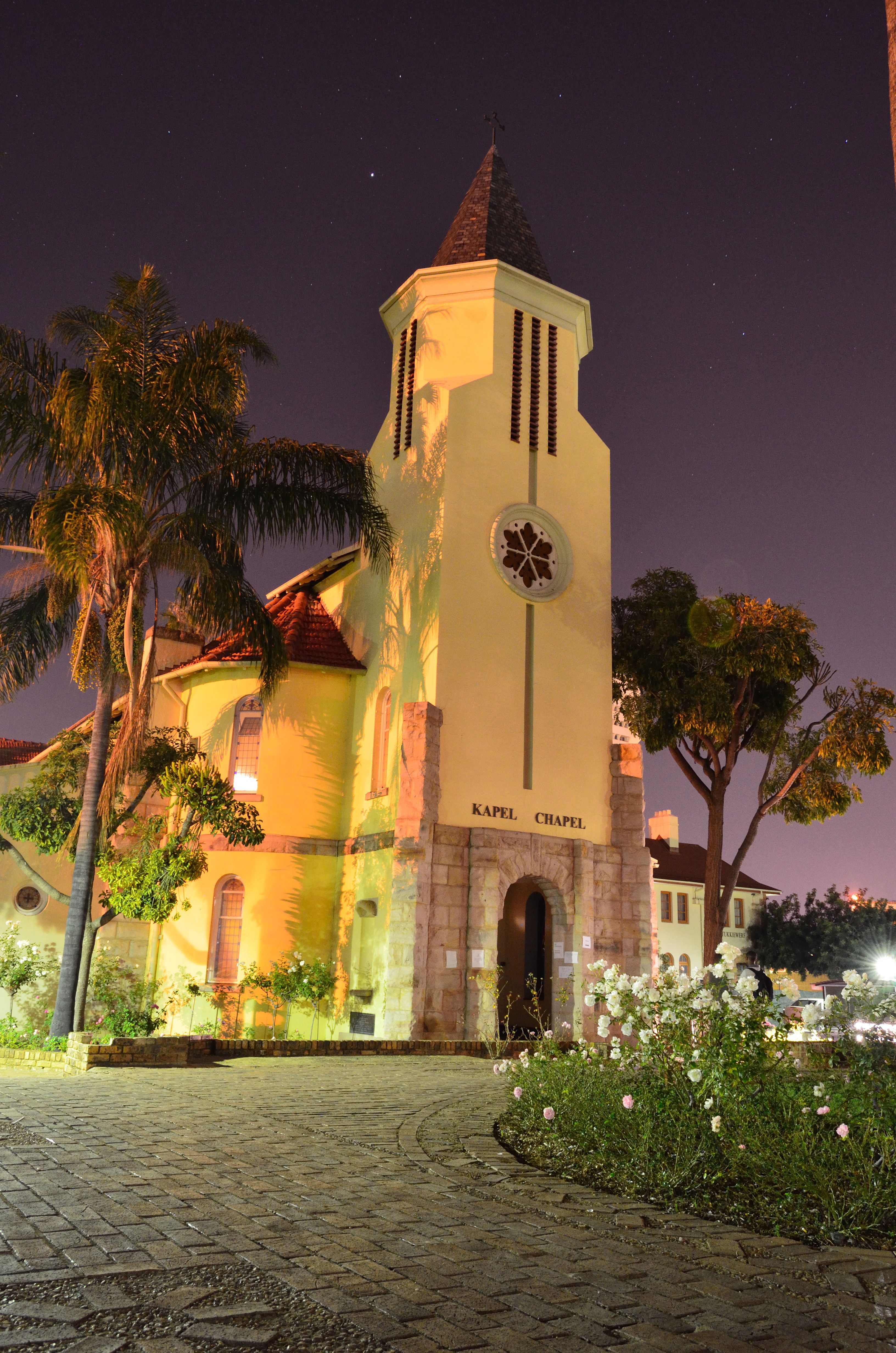 Side view of the Chapel Building taken at night, Hatfield Campus, University of Pretoria.