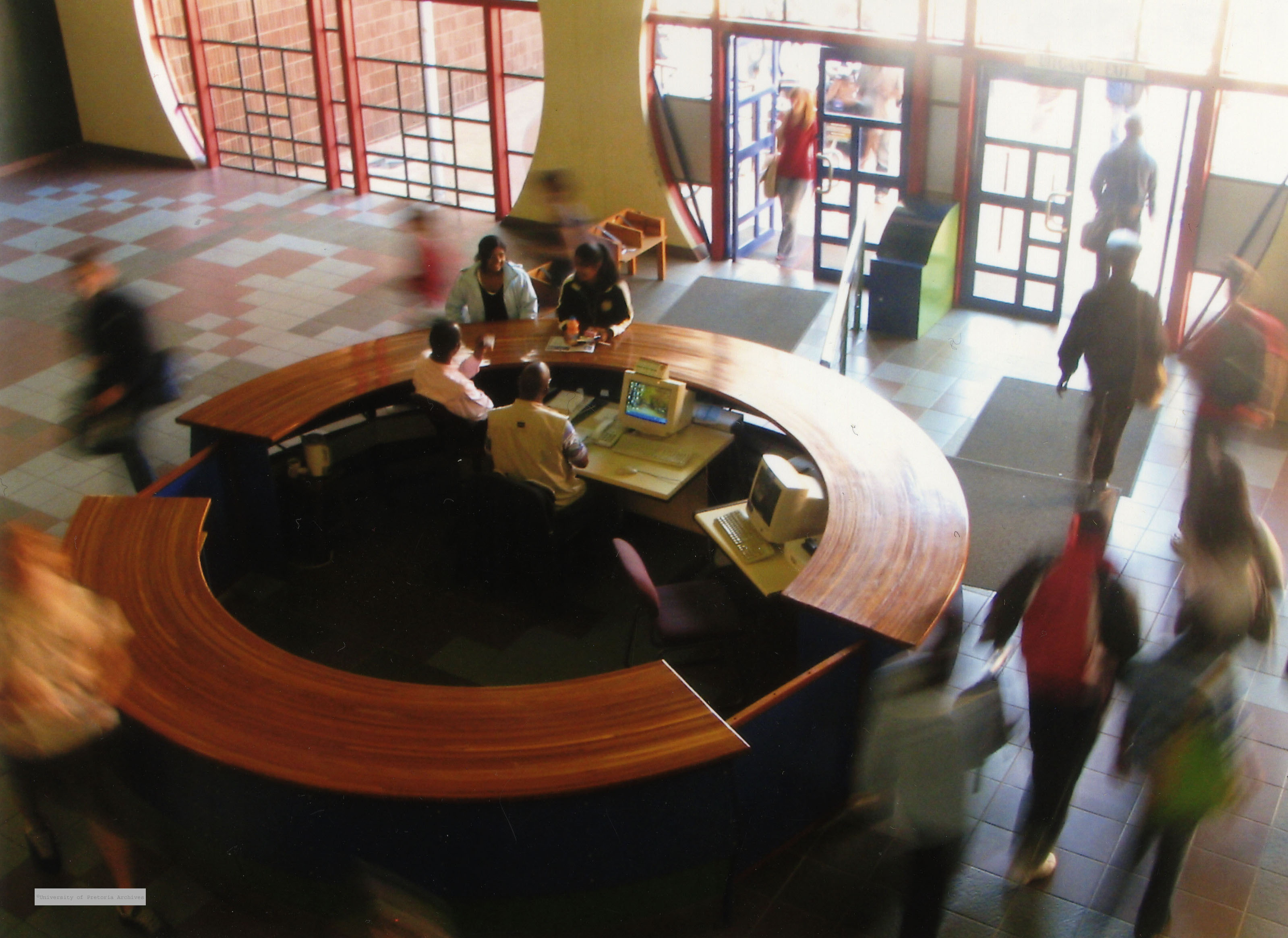 The inside of the Merensky 2 Library with students and security guards, Hatfield Campus, University of Pretoria.
