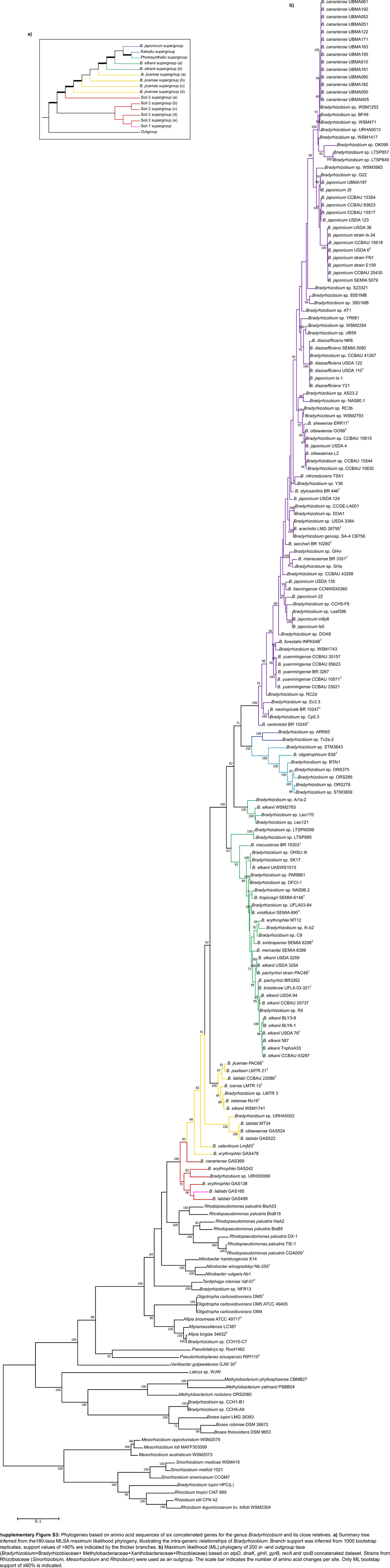 Phylogenomics, Bradyrhizobium japonicum, Bradyrhizobium elkanii, Photosynthetic Bradyrhizobium, Nodulation, Photosynthesis