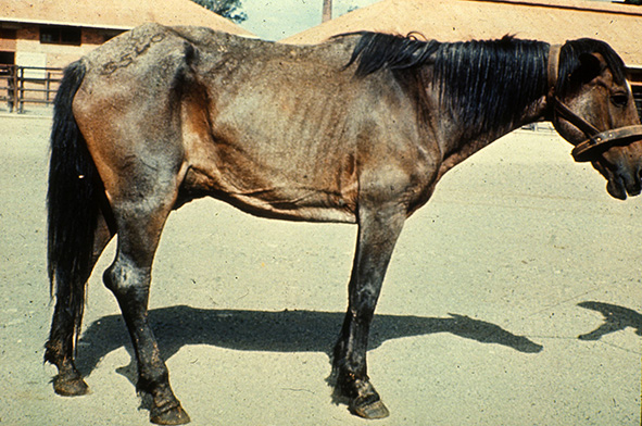 Trypanosomosis in a horse : severe emaciation and ventral oedema