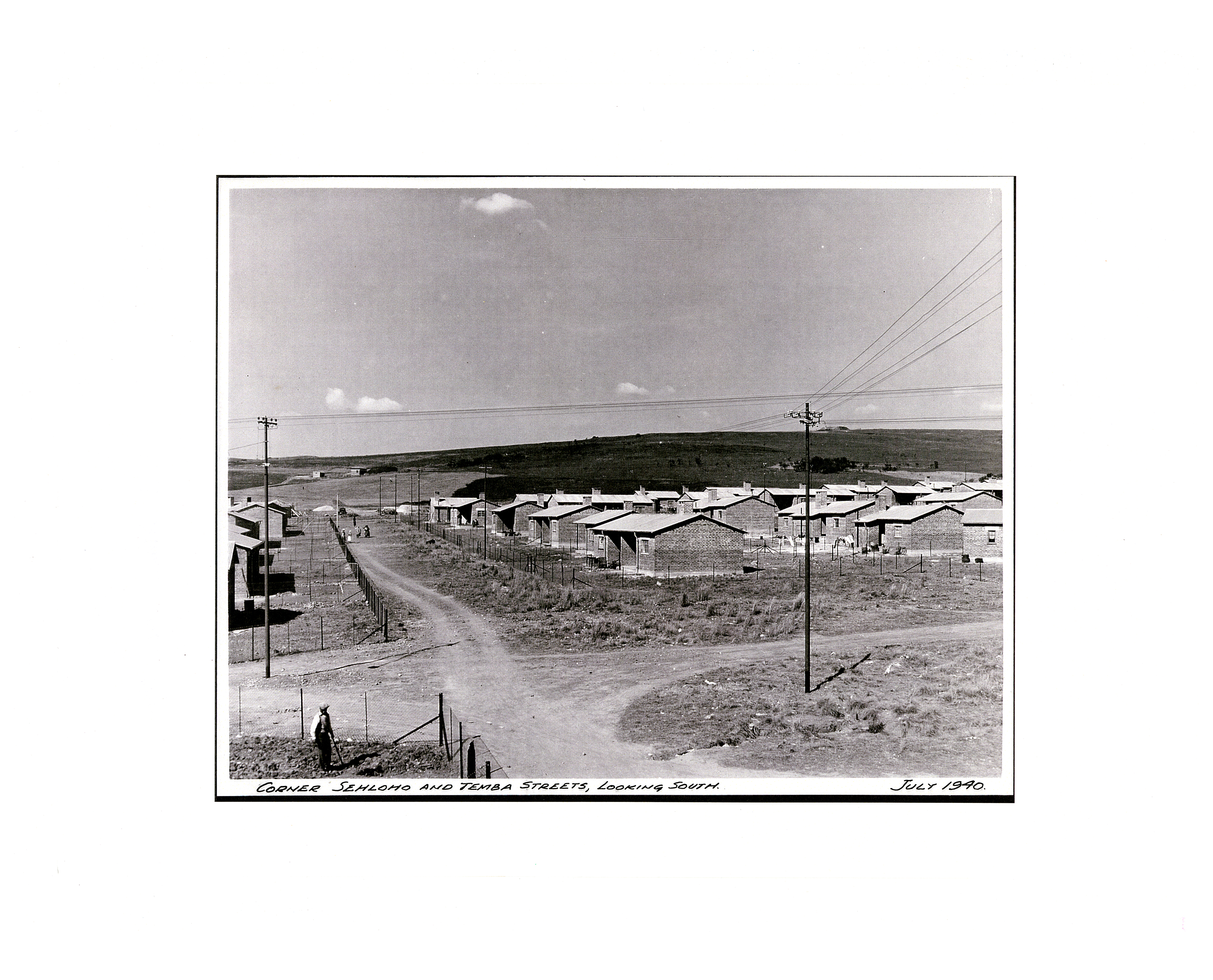 Black and white photograph of township houses. Image scanned at 600 dpi.