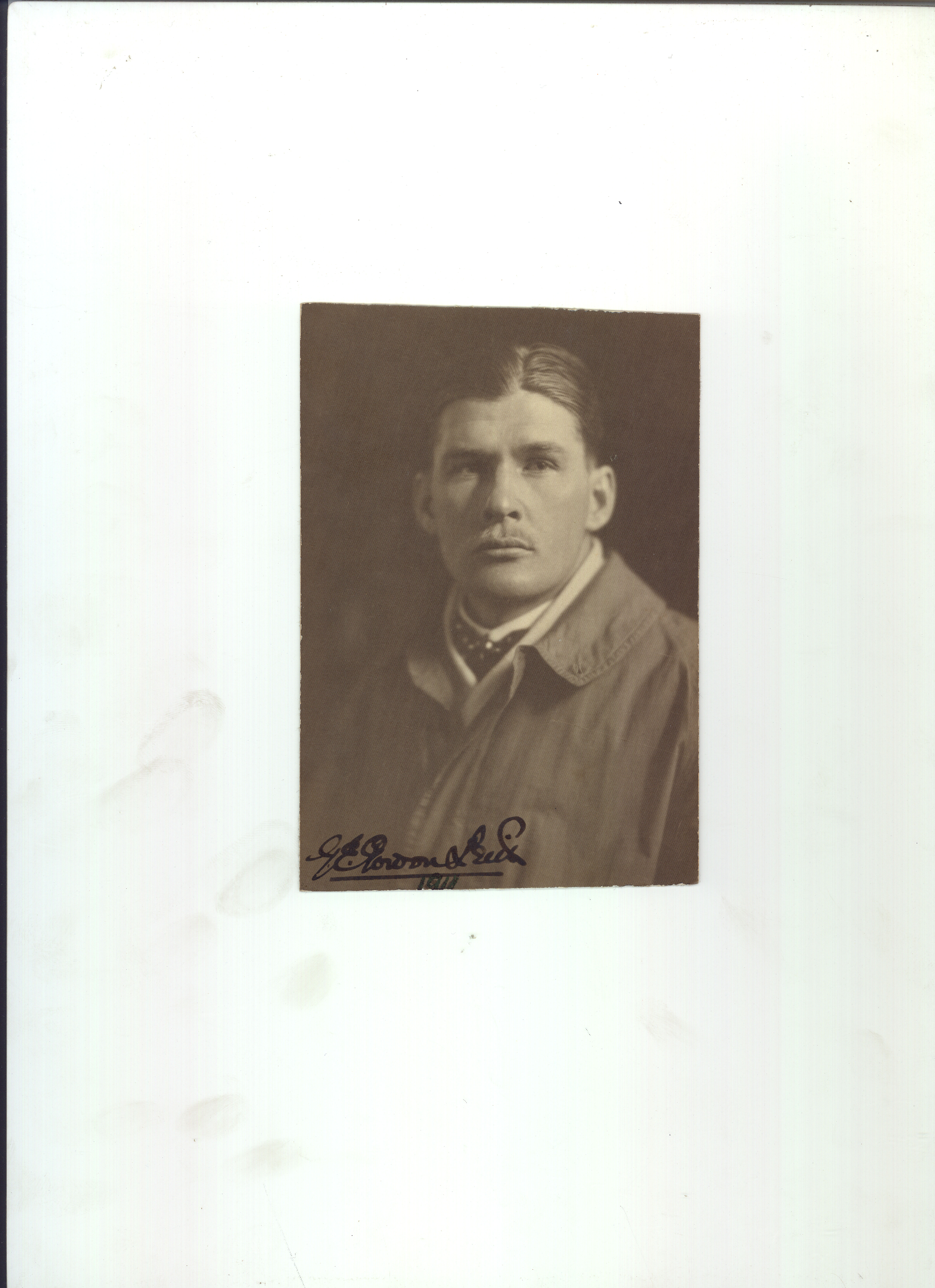 Black and white photo signed by Gordon Leith. Written on the back of the photo: 1911, the year he won the Baker scholarship. Photo scanned using a Canonscan 8000f 600dpi scanner : 34794400 * 2 pixels 2 items.