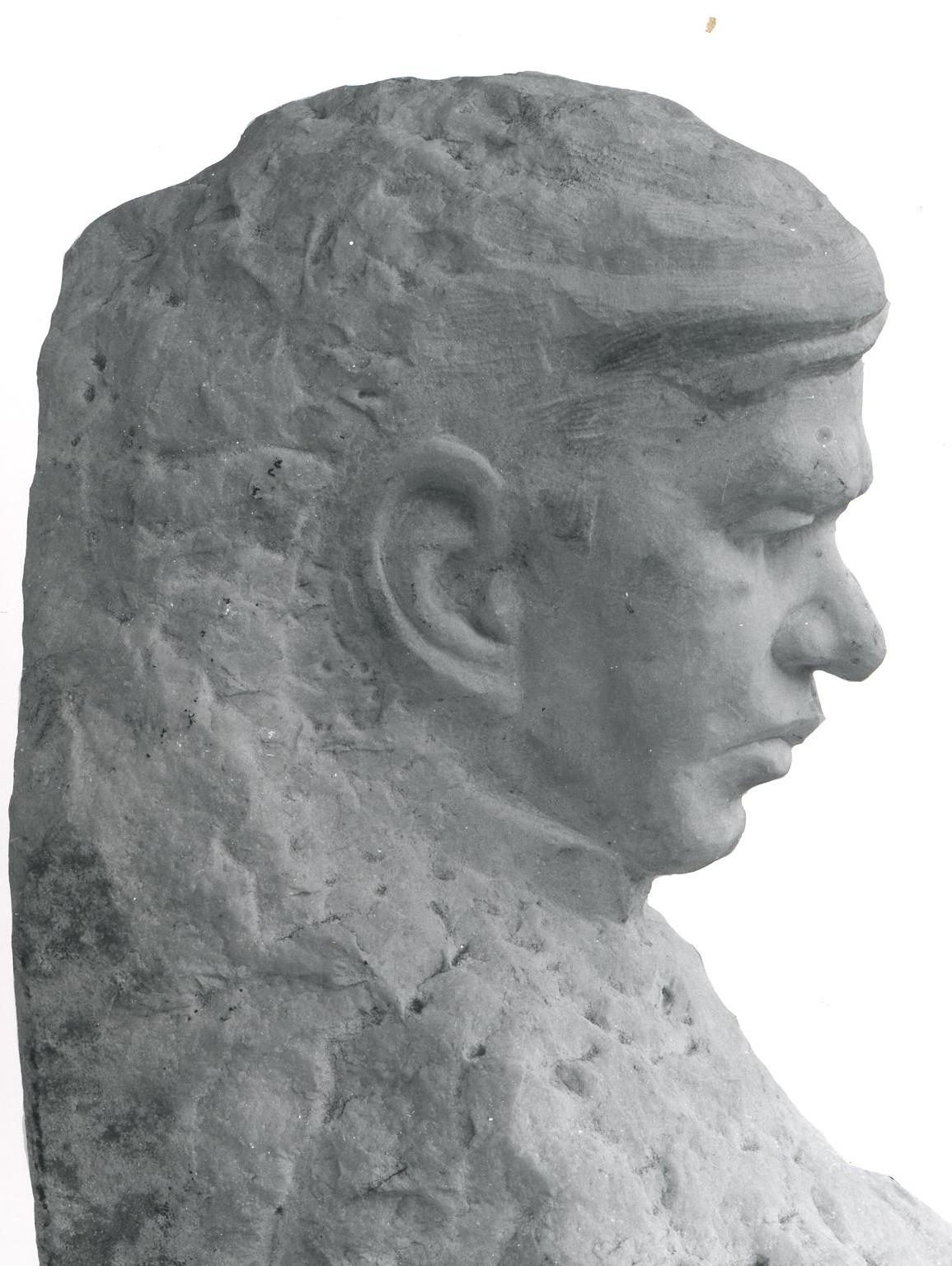 Herman Dirk van Broekhuizen (1871-1953) was married to Fanie Eloff’s niece, Elsie Franzina Eloff (1888-1945). He was a member of the Volksraad in the South African Union From 1925 to 1933. Eloff formed this work from clay during the internment of the 1914 rebels in the Johannesburg Fort during the First World War. The clay, according to his family, was smuggled into the prison in a food basket. The sculpture was carved from South African marble at a later stage. This work was also named ‘From the depths of despair’ by the Van Broekhuizen family.