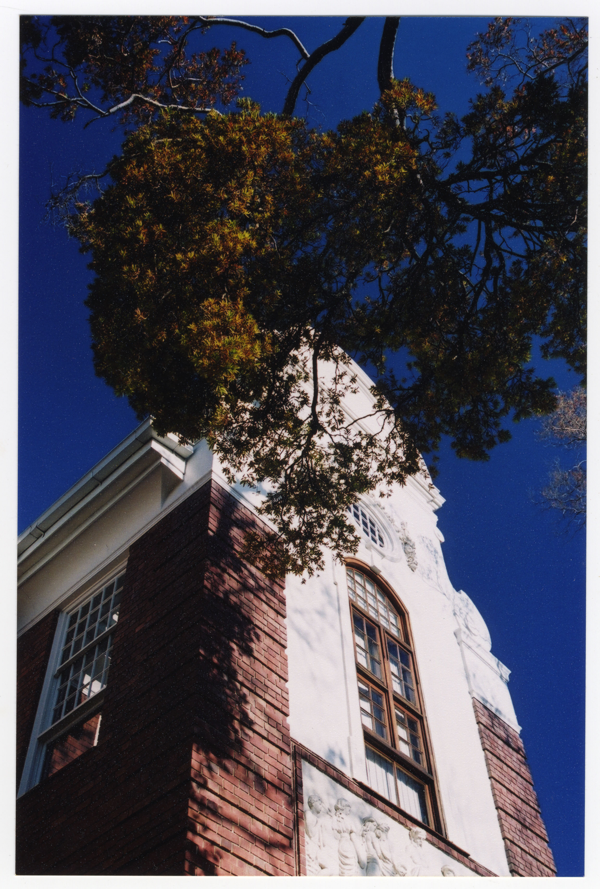 Ground side view of the Old Agricultural Building with a tree and the blue sky in the background, Hatfield Campus, University of Pretoria.