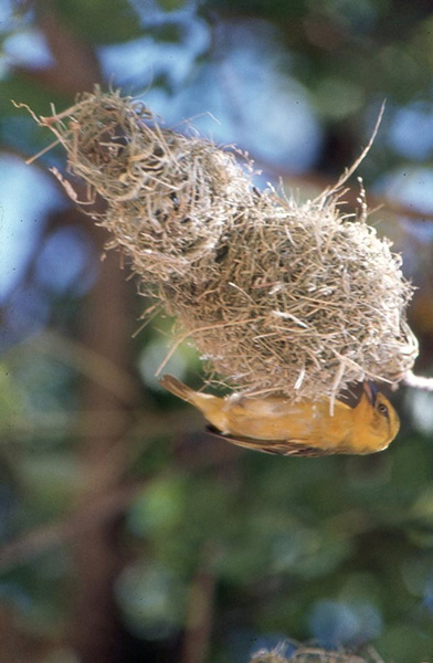 Golden weaver bird, Olifants River, Kruger National Park, South Africa - December 1980