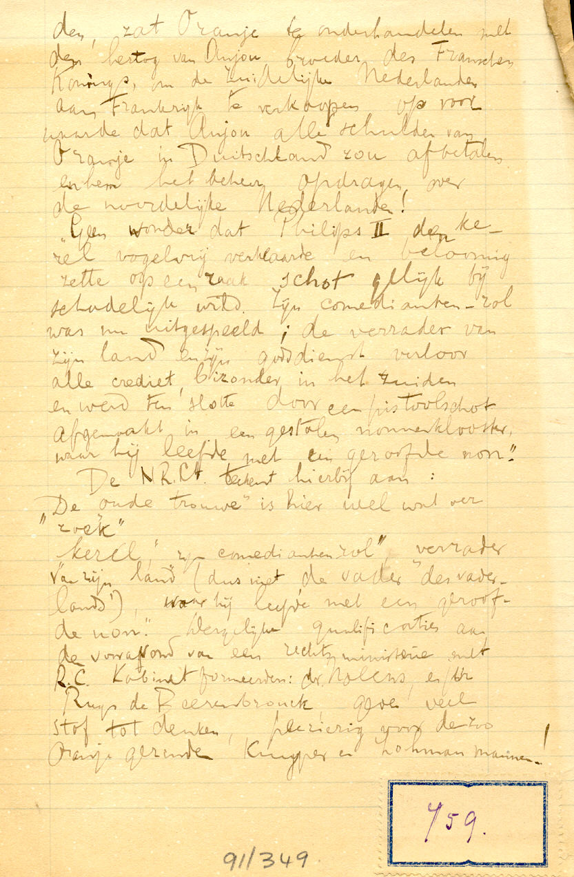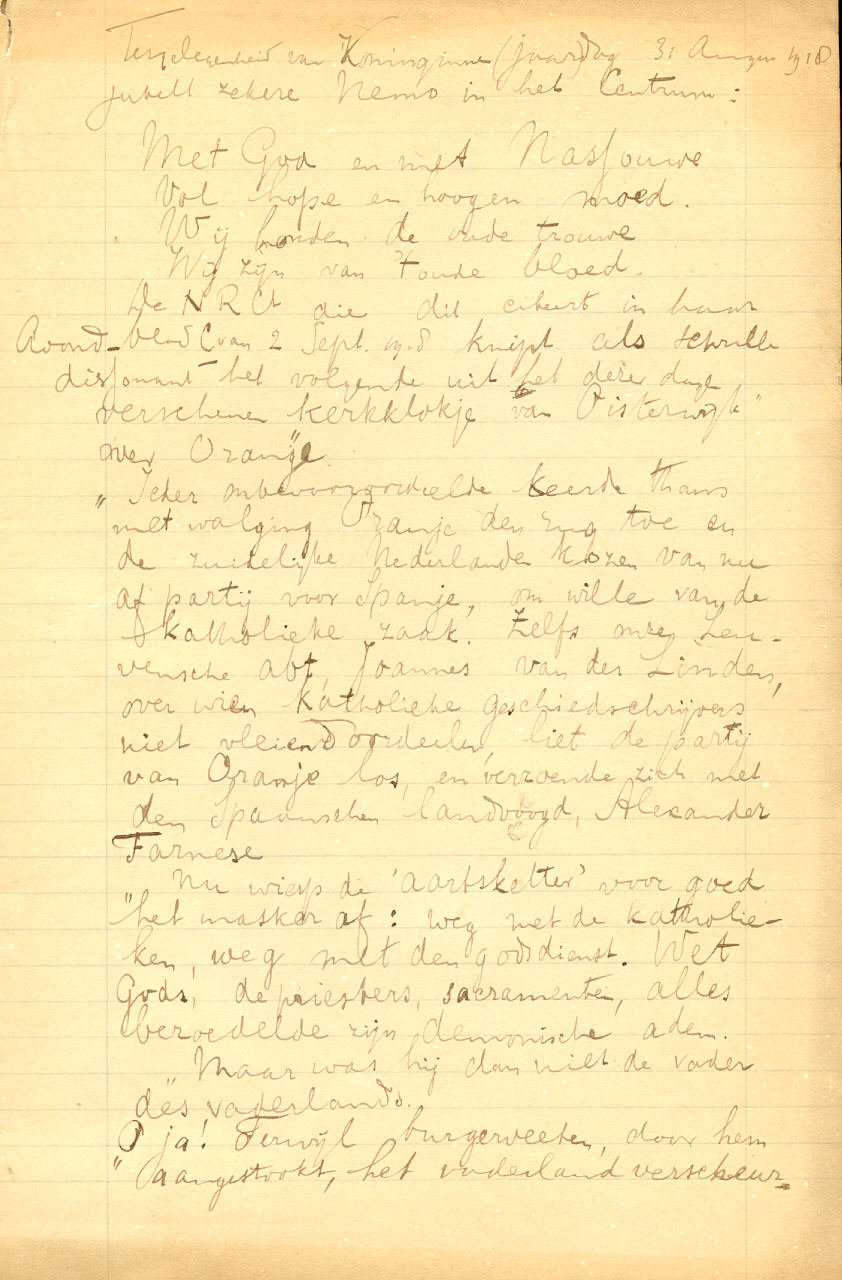 Poem written for Wilhelmina in 1918 after the 1st World War to celebrate the neutrality of the Netherlands