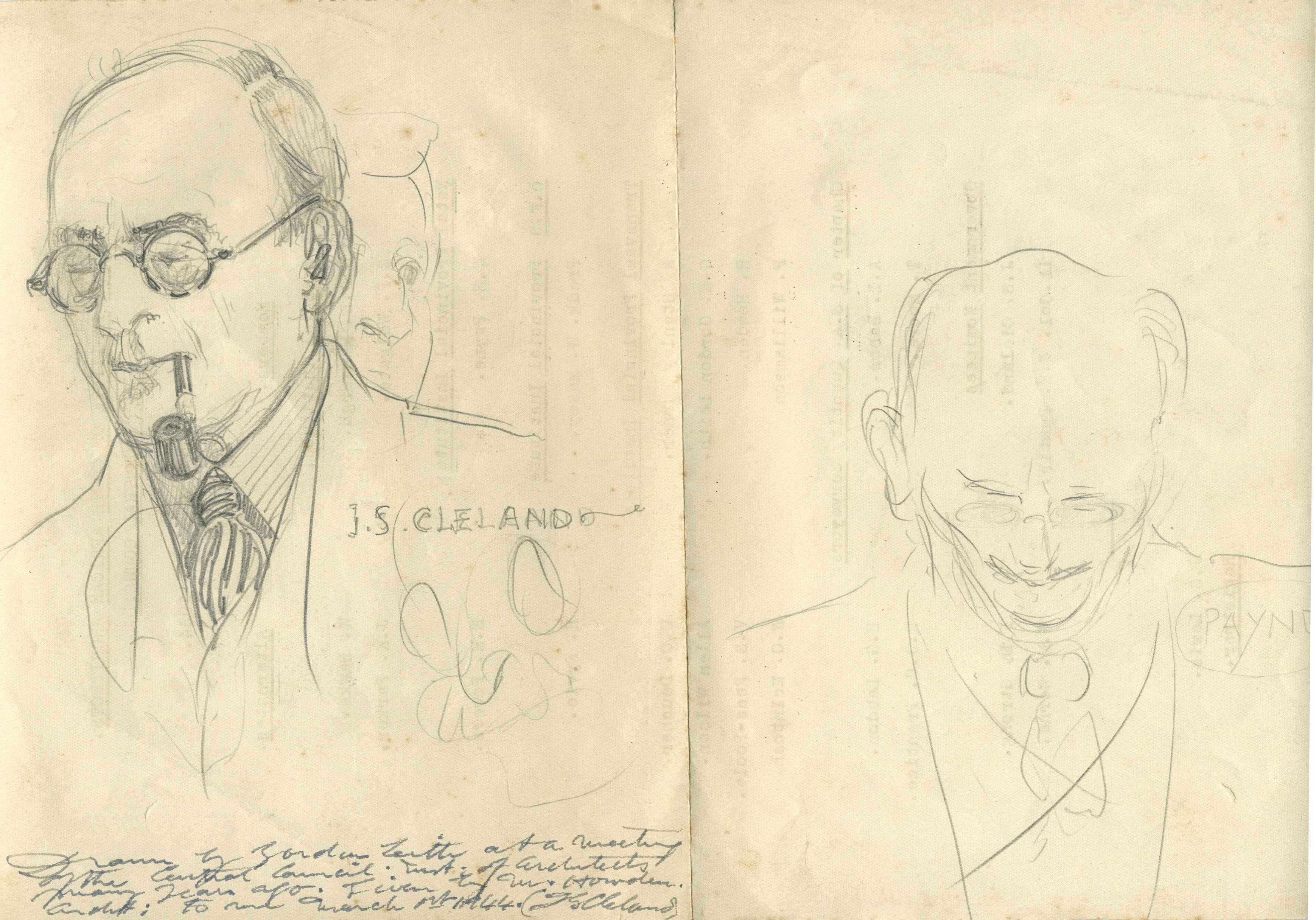 2 Hand drawn sketches of J.S. Cleland.