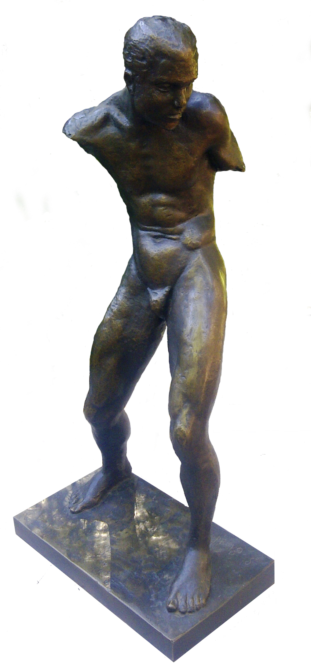 As Spirit of Sport (1917) was the most recognizable of Eloff’s sports figures, the later creations of the Discus Thrower (1924) and Javelin Thrower (1924) were also assumed titles for Spirit of Sport, which often led to confusion. Since Discus Thrower was made as a set with the Javelin Thrower in France in1924 these were unknown. To compound the problem, the discus figure had been posthumously cast in South Africa, and the original plaster’s arms had accidentally broken off when packaged.