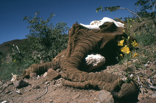 Poached elephant, Seesfontein, Damaraland, Namibia - April 1982