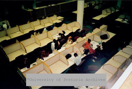 View over students in the Reserved collection study area of the Library, University of Pretoria