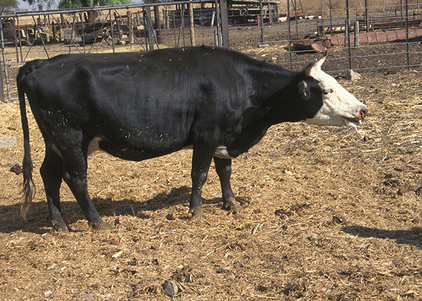 Malignant catarrhal fever (MCF) : severe respiratory distress and extension of the neck to relieve breathing
