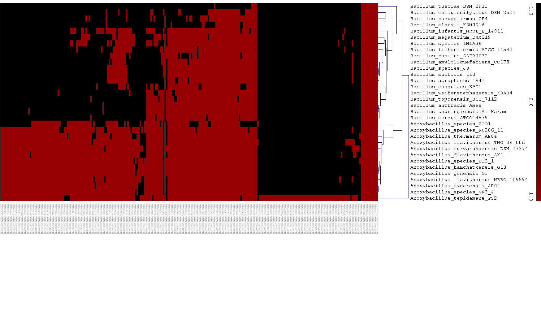 FIGURE S4 : Heatmap comparison of the Geobacillus soft-coregenes against Anoxybacillus and Bacillus genomes.
