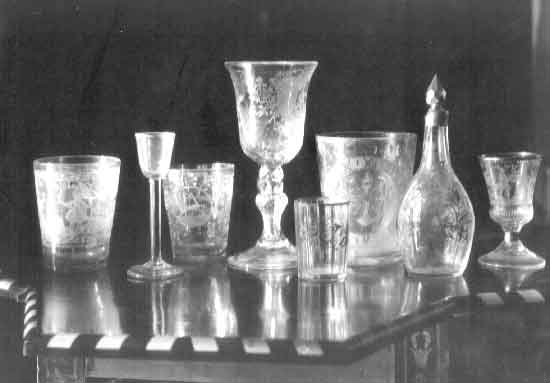 Glassware, Pearse, G.E., 18th Century, Eighteenth Century, Wine glasses, Carafes, Decanters, Pearse, Geoffrey Eastcott (1885-1968), Beakers, Engraved glass
