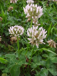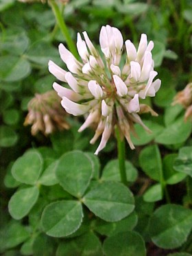 BOTANICAL DESCRIPTION: Trifolium repens: Low growing, spreading plants with trifoliate leaves, sometimes mistaken for grass.
