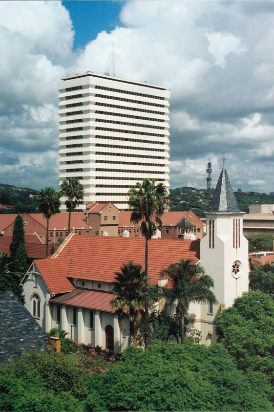 Distant side view of the Human Sciences Building, Hatfield Campus, University of Pretoria.