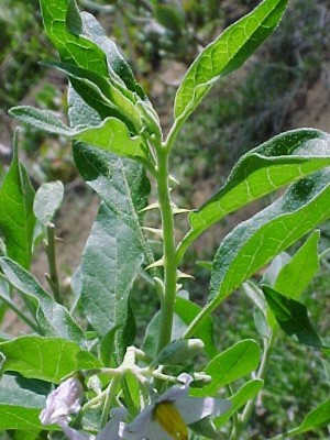 BOTANICAL DESCRIPTION: General: An erect, somewhat woody, loosely branched, spiny shrub, growing up to 2 m high. Young branches are densely hairy. Leaves: The greyish-green leaves are covered with minute hairs. Flowers: Light blue flowers and orange-red to scarlet berries are borne more or less simultaneously from about October to May.