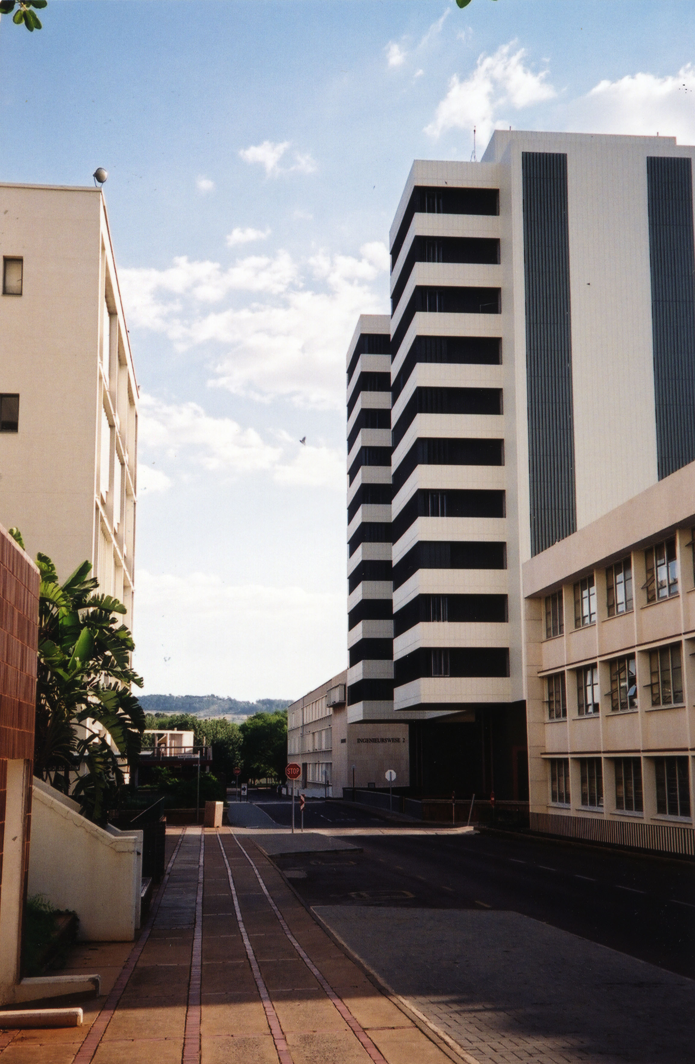 Back view of the Engineering I Building and the Engineering II Building, Hatfield Campus, University of Pretoria.