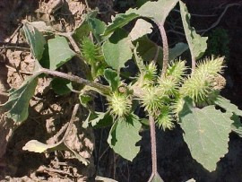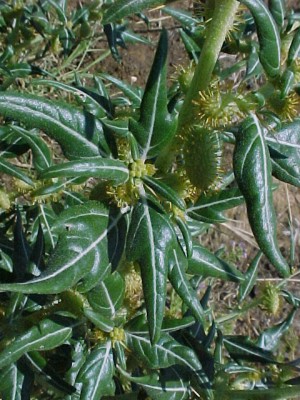 Xanthium spp. Cackle bur, Boetebossie DISTRIBUTION: Usually to be found in disturbed soil, Xanthium spinosum was the first exotic species to be officially declared an invasive weed. (1860). SYSTEMS AFFECTED: Skin and appendages.