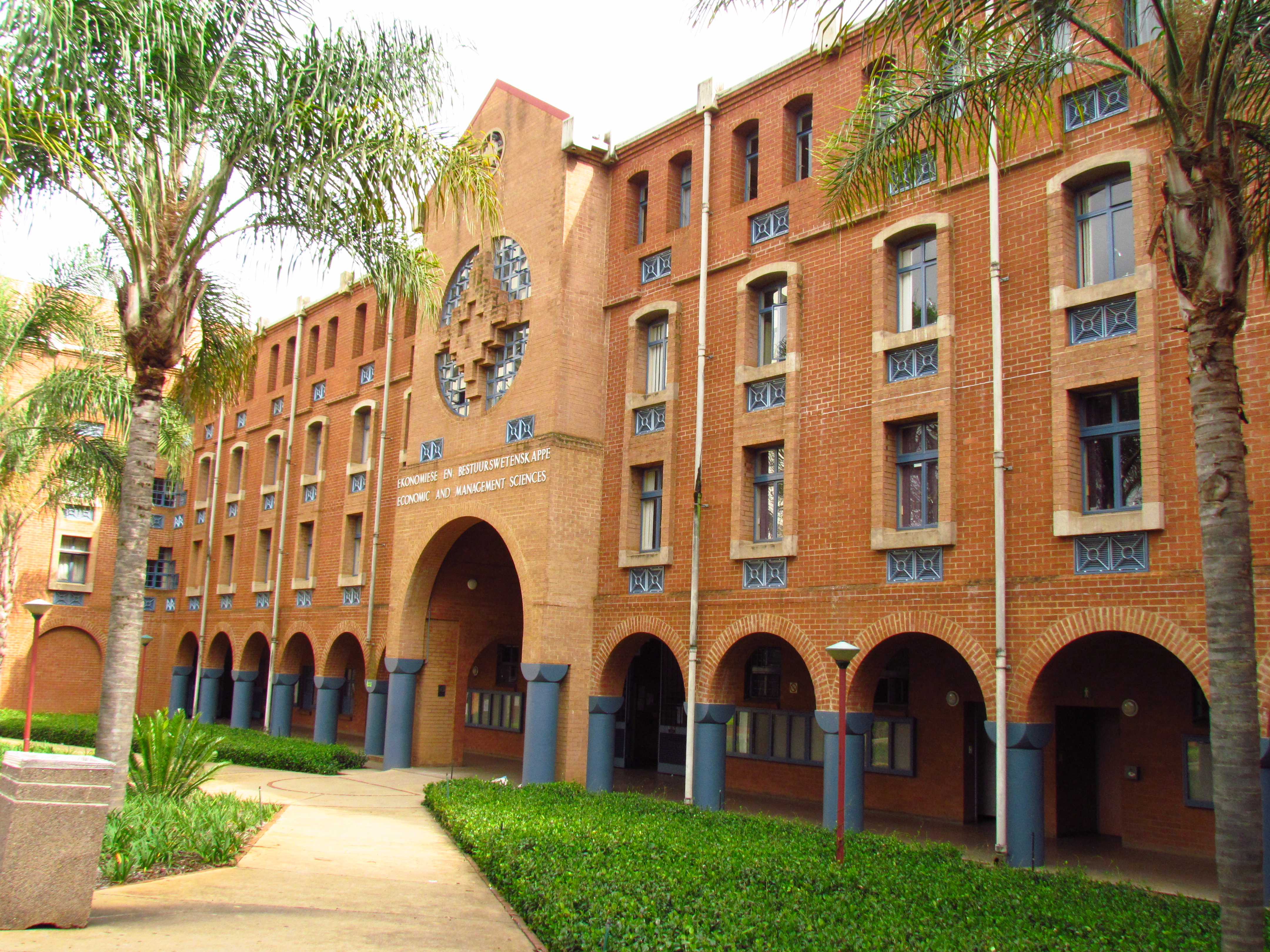Angled front view of the Economic and Management Sciences Building, Hatfield Campus, University of Pretoria.
