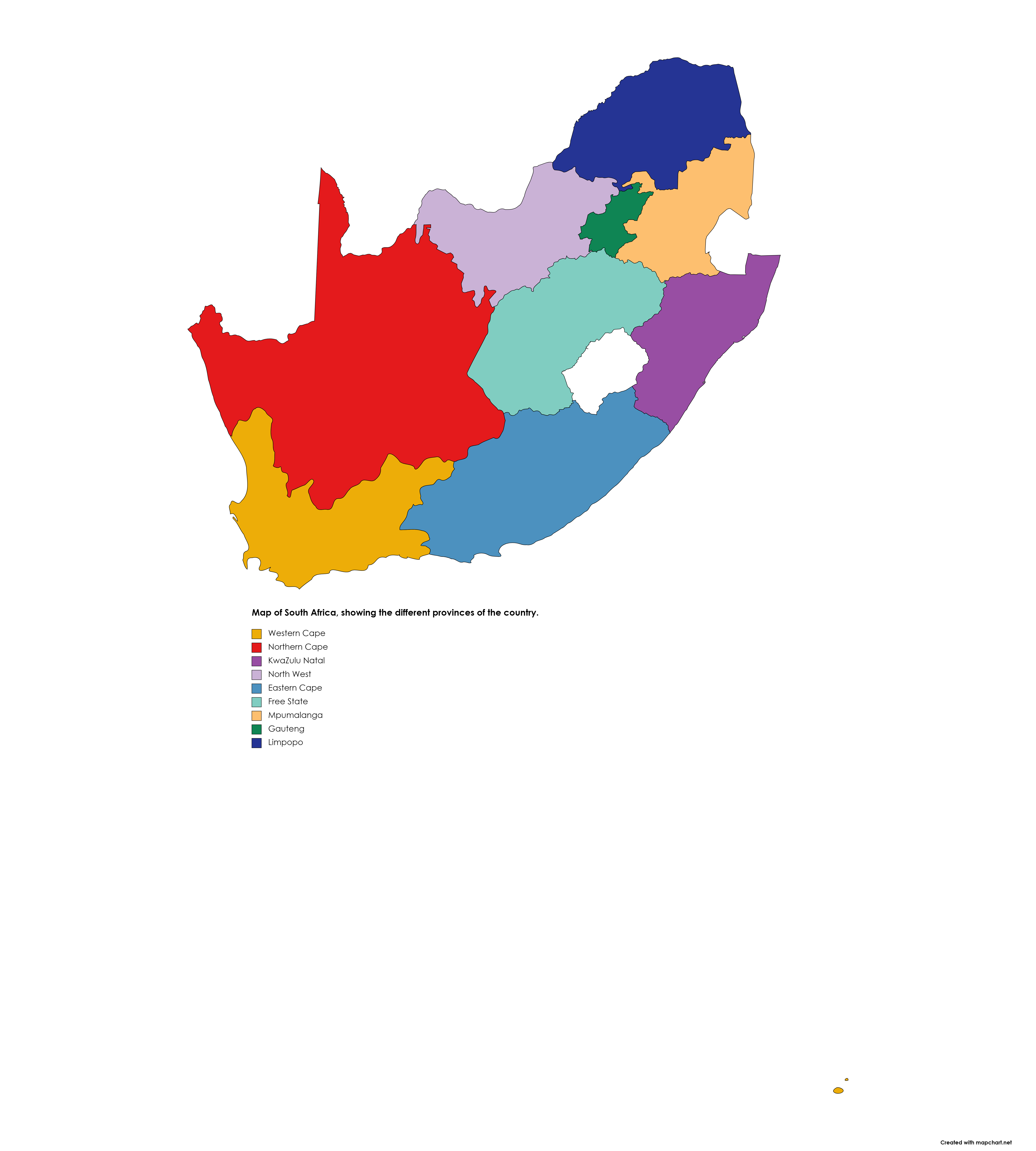 | dc.description | SUPPLEMENTARY INFORMATION : Map of South Africa, showing the different provinces of the country. Provinces (regions) are indicated in different colors. | en_US |