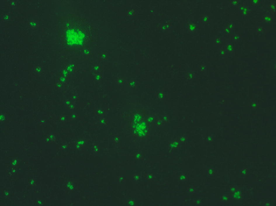 Supplementary Fig. S2. An example of the fluorescence of the positive control dog serum tested by IFAT at a dilution of 1:80.